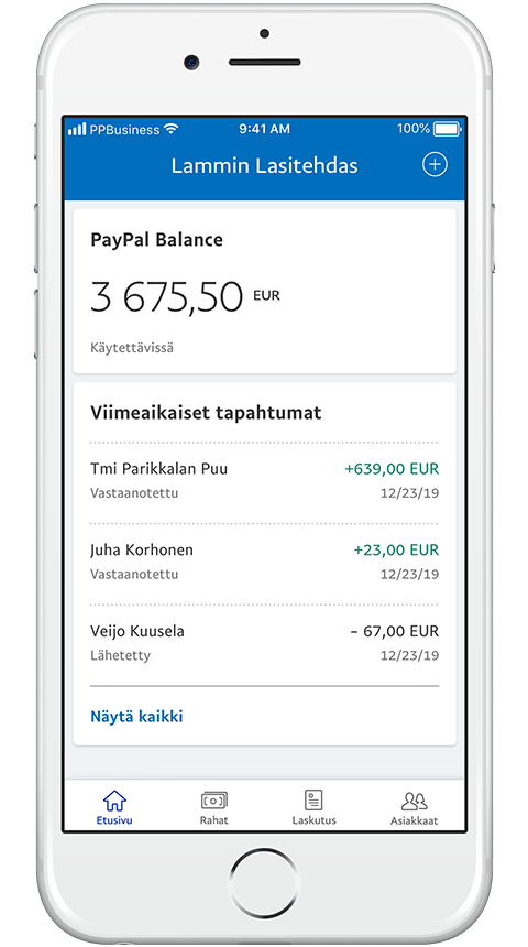 Kaikki PayPal-asiakastietosi löytyvät nyt yhdestä paikasta. Voit tarkastella asiakkaiden tapahtumahistoriaa, tuoda yhteystietoja ja ottaa suoraan yhteyttä matkapuhelimellasi.